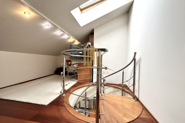 We are pleased to present a two-level apartment located in a closed, guarded complex, close to single-family houses and Arkadia Park. Apartment on the top 3rd floor, finished to a high standard.