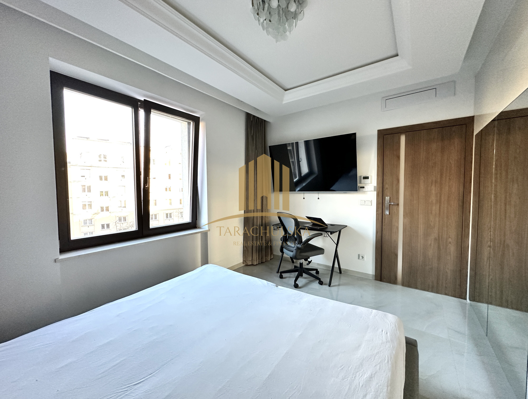 – master bedroom (bed 180) with a TV, a work desk plus a big built-in wardrobe