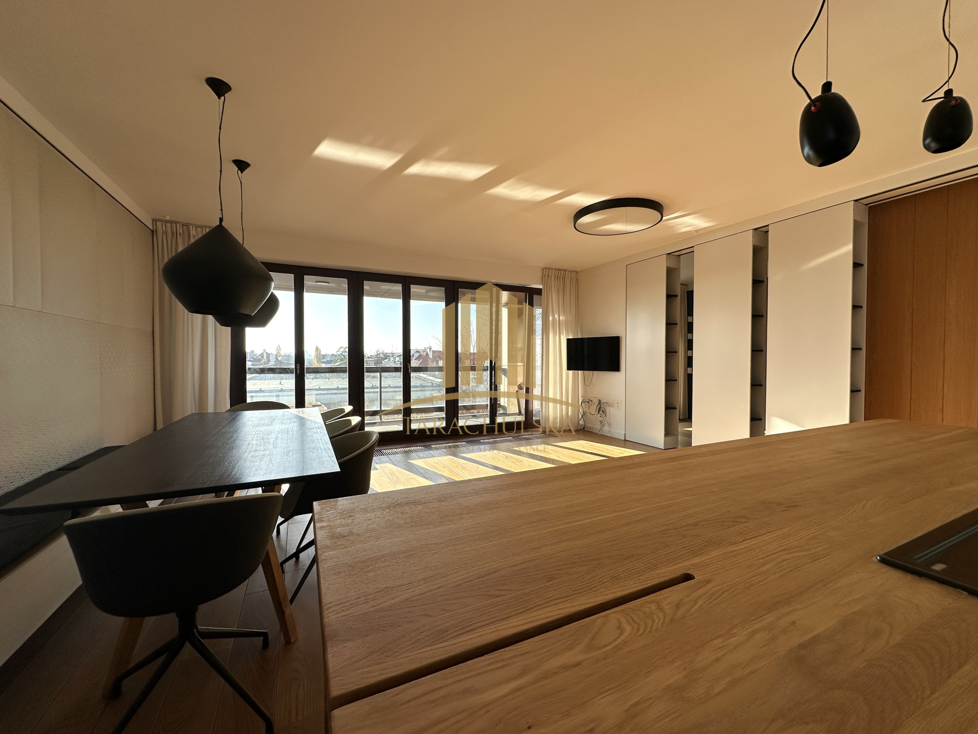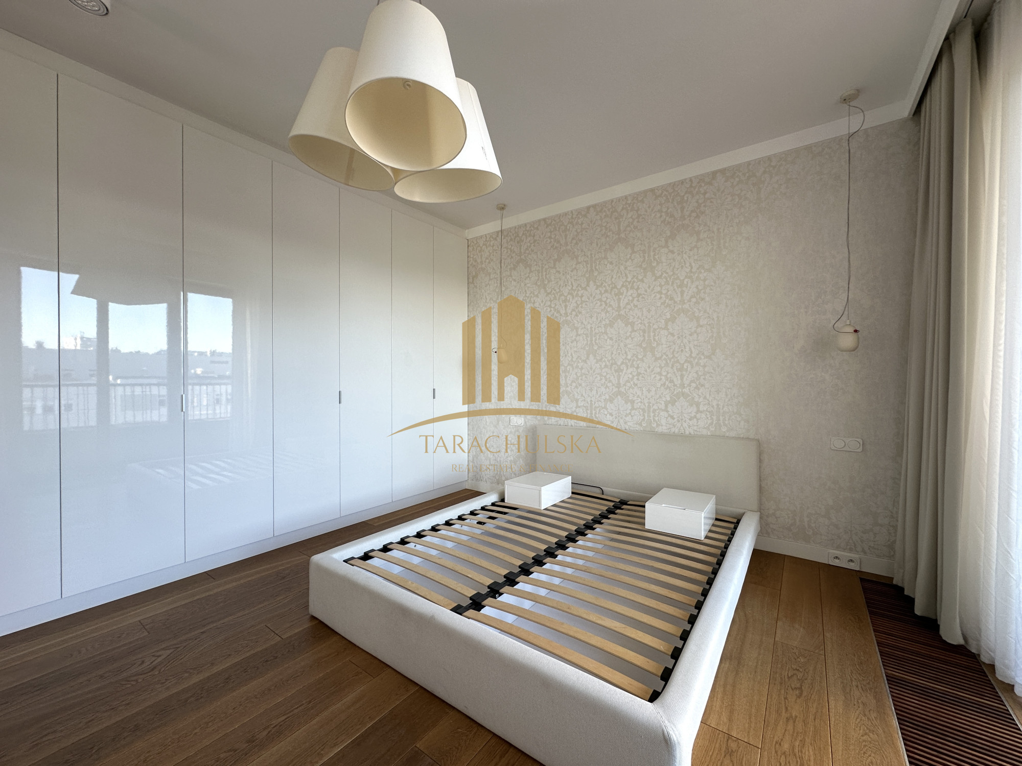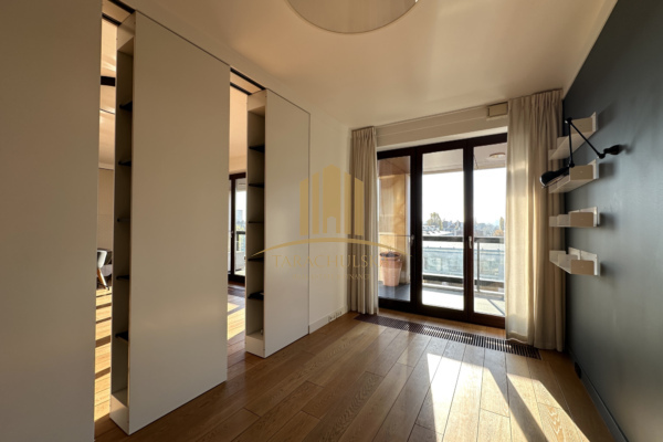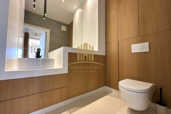 The apartment is located in one of the most exclusive residential buildings in Warsaw Klimt House. The appearance of the common areas refer to the artist Gustav Klimt. This elegant and very prestigious building comes with a gym and sauna for the exclusive use of residents and special filter water.