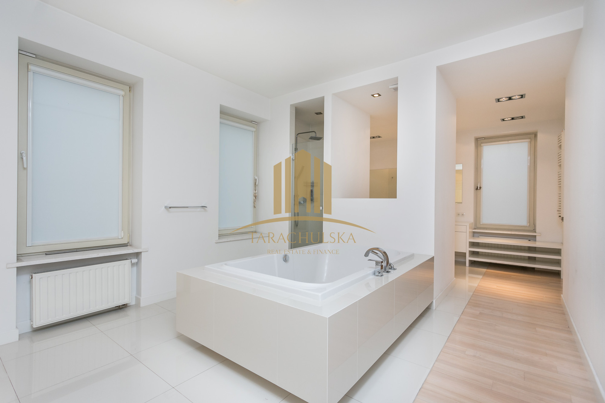 – sypialnia małżeńska połączona z salonem kąpielowym z wanną i kabiną prysznicową oraz duża garderoba typu walk -in